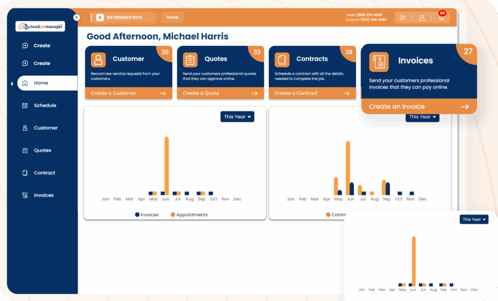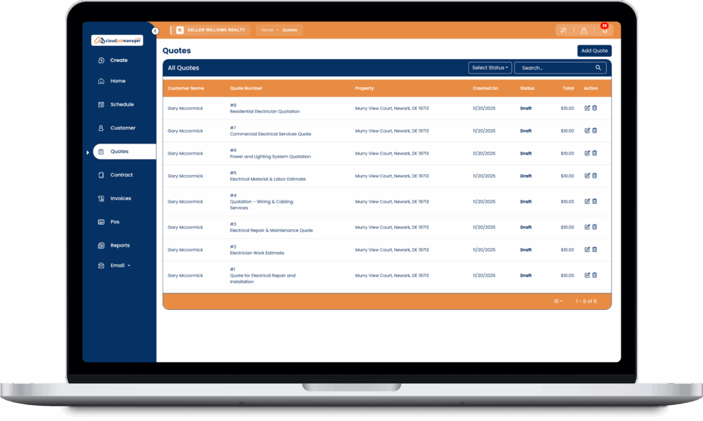 Running an electrical business means handling service calls, safety checks, quotes, and invoicing, often all in one day. Cloud Job Manager integrates all aspects of your workflow into a single, secure, easy-to-use application built for on-the-go electrical contractors. Organize jobs, delegate work, monitor progress, and clear your invoices through one streamlined dashboard.