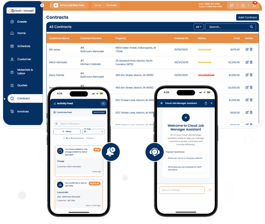 Material purchases, vendor bills, labor hours, and equipment usage can all be logged against each job as they happen. Your dashboards then compare actuals to estimates so you can catch overruns early instead of discovering them at the end of the project.