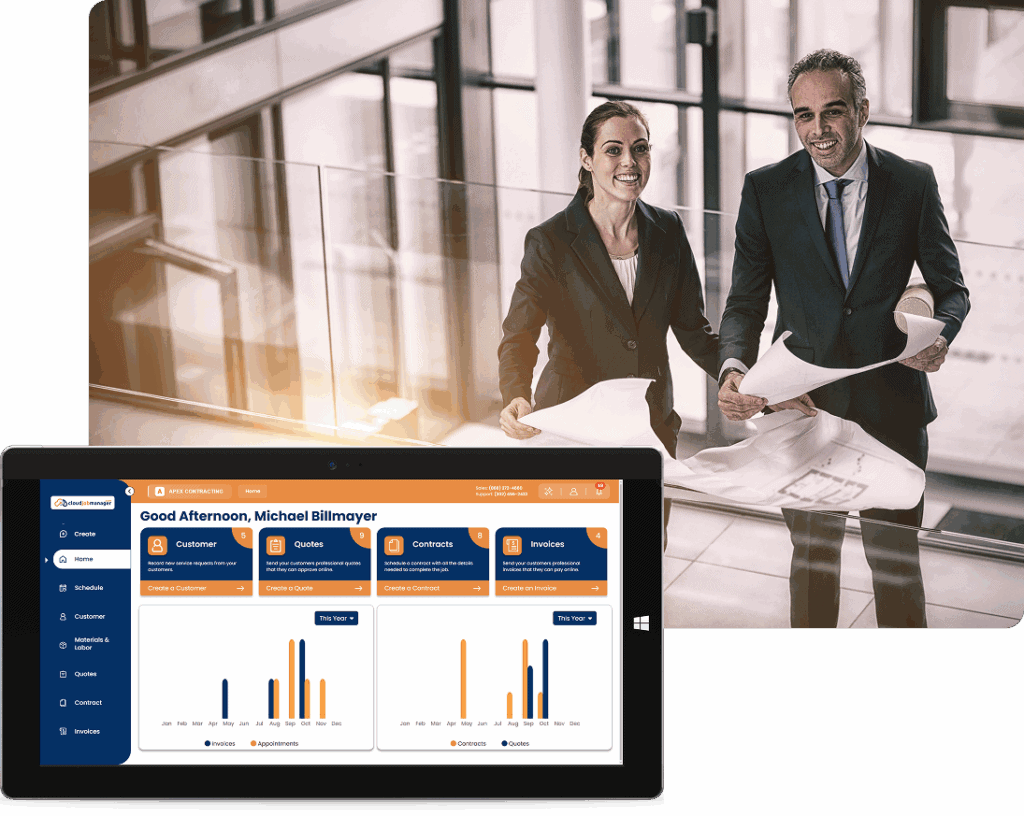 You can use the core platform – project tracking, scheduling, communication, cost tracking, quotes, and invoices – without a software subscription. The only cost comes from standard payment processing fees when you collect card or electronic payments through Host Merchant Services.