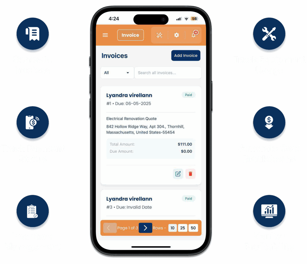 You can update the job on the fly—add new line items, adjust time, and revise the quote or invoice right from the same system. That way, the final bill matches the real work done, and you can collect payment immediately through Host Merchant Services without manual rework later.