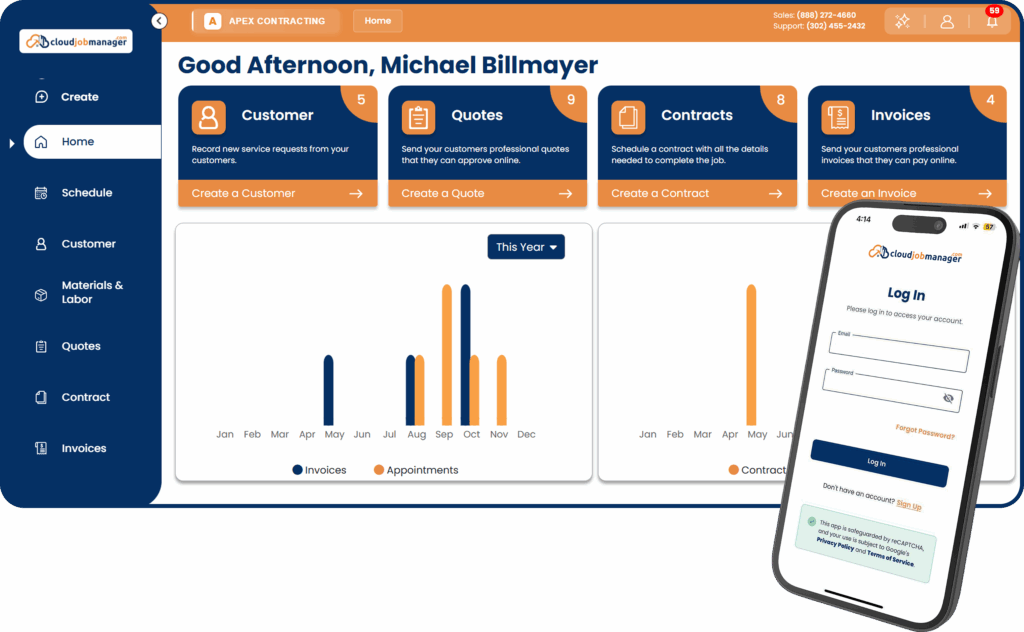The software itself – scheduling, job tracking, checklists, quoting, invoicing, and reports – is free to use. The only cost comes from standard payment processing fees when you accept card or online payments through our integrated partner, Host Merchant Services.